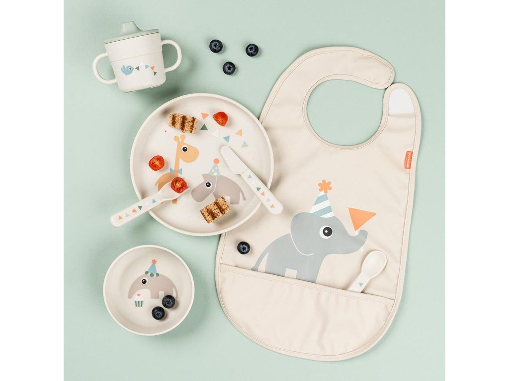 Tento praktický bryndáček v hezké pískové barvě je navržen tak, aby vám i vašemu děťátku udělal zábavu při jídle. Tento bryndáček s hravým motivem Elphee dodává každému jídlu nádech hravosti.