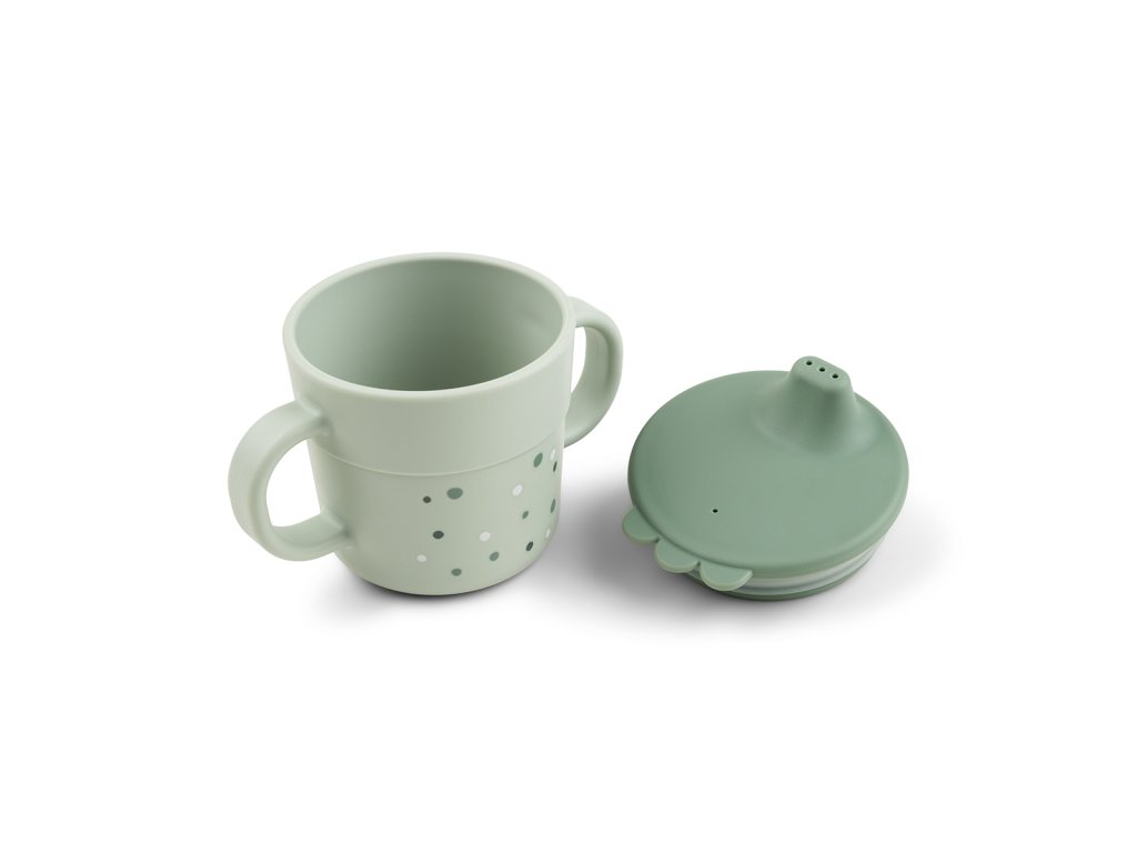Hrnek s pítkem Foodie je perfektní hrneček 2 v 1 pro nejmenší, kteří si procvičují své první doušky. Praktické víčko minimalizuje nepořádek a jakmile je Vaše dítě připraveno na sejmutí víčka, dvě praktická ouška zajistí pevné uchopení. Hrnek má praktické protiskluzové dno a je vhodný do myčky i mikrovlnné trouby. Jakmile hrnek doslouží svému účelu prostřednictvím bezpočtu rodinných večeří, lze jej roztřídit jako plast a recyklovat na nové produkty každodenního života. Půvabný hrnek s pítkem pokrytý hravým tečkami rozzáří každé jídlo. Jeho hedvábně matný povrch ladí se zbytkem kolekce Foodie.