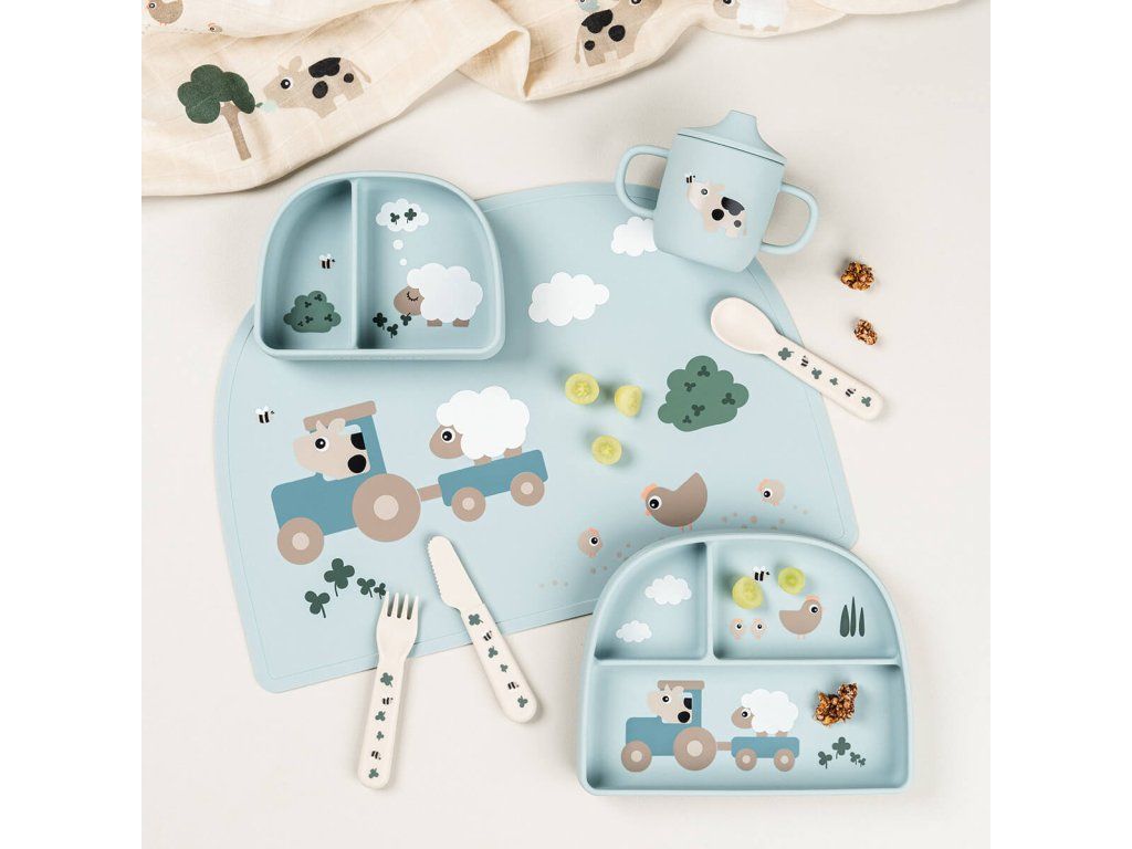 Dětský hrneček s pítkem Tiny Farm - modrý