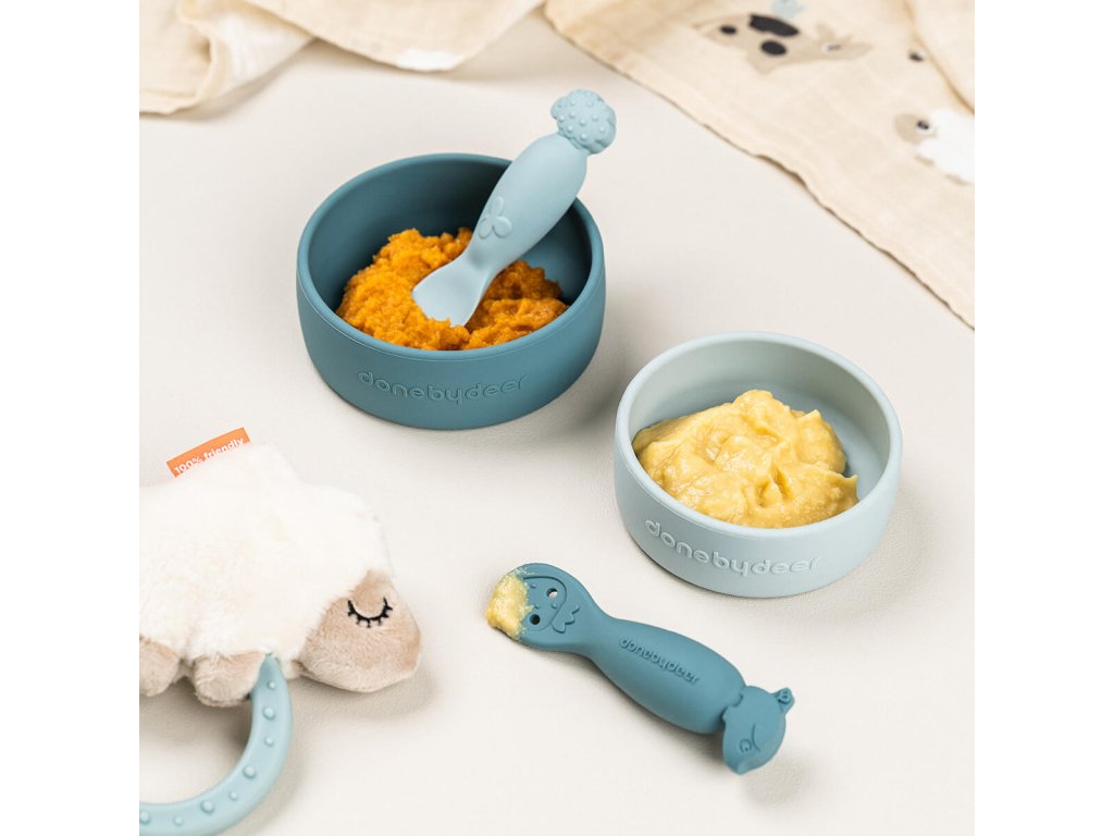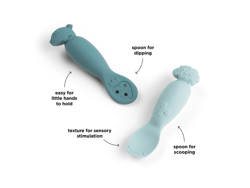 Když Vaše dítě začíná jíst samo, je příjemné mít k ruce společníka. Lžičky jsou vyrobeny ze silikonu, který poskytuje příjemný úchop pro malé ručičky. Velikost dětské lžičky je ideální pro samostatné batole, které se učí jíst samo a pro nadcházející roky. Praktické 2-balení lžiček ve dvou odstínech. Ideální pro konzumaci všech oblíbených jídel a zkoušení nových jídel.
