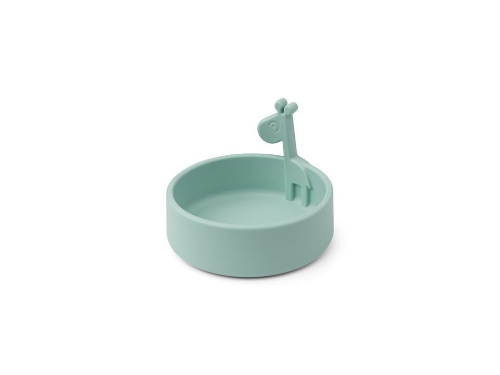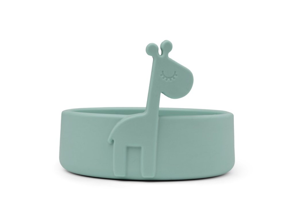 Peekaboo, je čas jíst! Raffi vykukuje z roztomilé a praktické silikonové místičky připravené udělat z jídla další zábavnou denní dobu. Díky vyšším okrajům a zaobleným vnitřním hranám je míska ideální pro snadné nabírání, když se dítě učí jíst samostatně. Rozkošná mistička je vyrobena z potravinářského silikonu, takže je nerozbitná a vhodná pro použití v mikrovlnné troubě, troubě, mrazničce a myčce nádobí a má protiskluzové vlastnosti. Odolná silikonová mísa je ideální pro ohřátí dětské stravy. Malým se bude líbit, když se k nim žirafka Raffi připojí na jídlo. Praktická mísa je v jemném odstínu odpovídající kolekci nádobí Peekaboo a je dodávána v roztomilě zdobené dárkové krabičce.