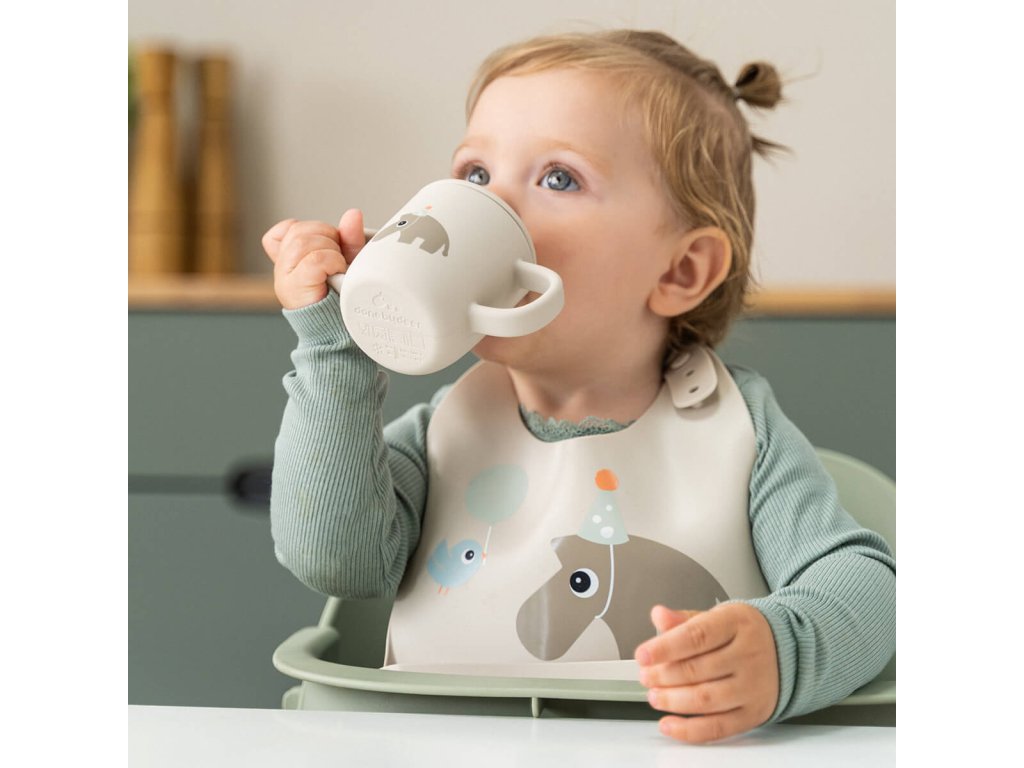 Silikonový bryndáček Celebration - pískový
