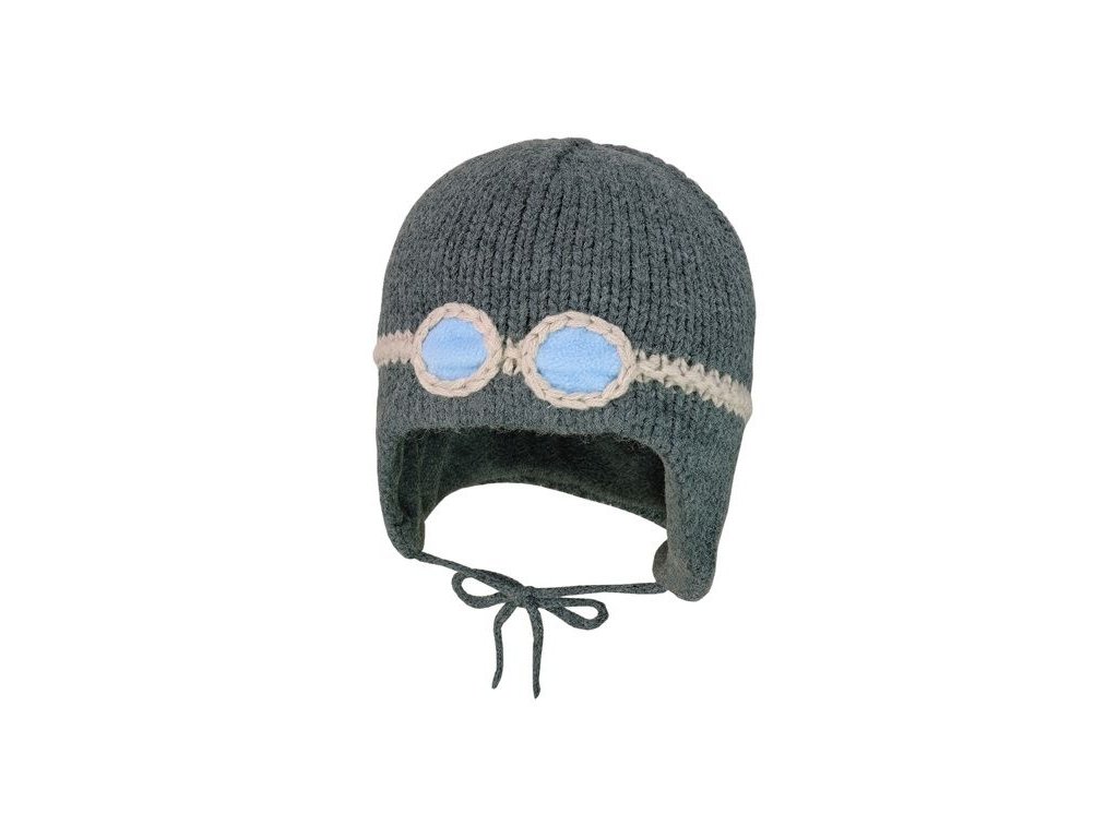 Dětská čepice s vtipným motivem brýlí. Čepička je na zavazování pod krkem.