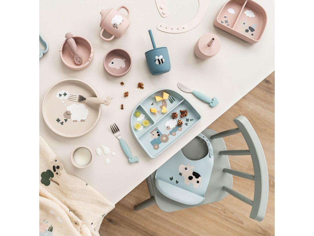 Stick and stay silikonový talíř Tiny farm - pískový