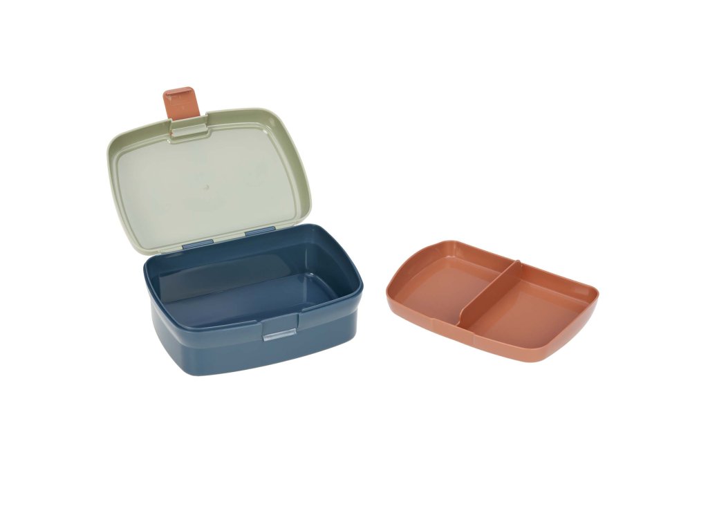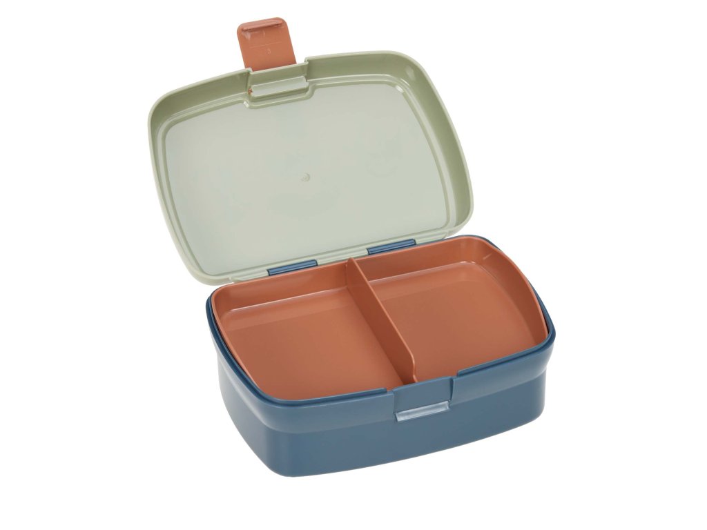 Nová dobrodružná svačinová krabička od firmy LÄSSIG se bude líbit každé malé průzkumnici a malému průzkumníkovi. Vrchní dělená část je vhodná na menší kousky, například plátky ovoce a dolní prostorná část je na sendvič apod. Krabička má pevně uzavíratelné výklopné víčko. Lze ji mýt v myčce, ale pro delší životnost obrázku, doporučujeme mýt ručně.
