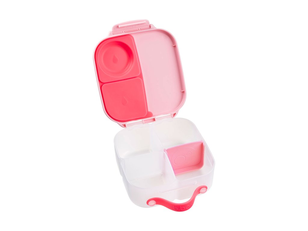 Svačinový box od b.box vám zjednoduší a zpříjemní čas na svačinu nebo přesnídávku. b.box navrhl variabilní lunchbox, do kterého zabalíte nespočet různých druhů svačinek. Najdete zde oddělení pro ovoce, zeleninu, nebo na čtvrtky nakrájený toast. Naprosto jedinečné zpracování víčka krabičky s elastickým kroužkem umožní vložit do krabičky celé jablko. Silikonové dvojité víčko pak dovolí skladovat v menších odděleních jogurt nebo dip (nikoli tekutiny). Některé vnitřní "přepážky" jsou vyjímatelné a nastavitelné. Jednoduché otevírání umožní dětem samostatně se obsloužit.