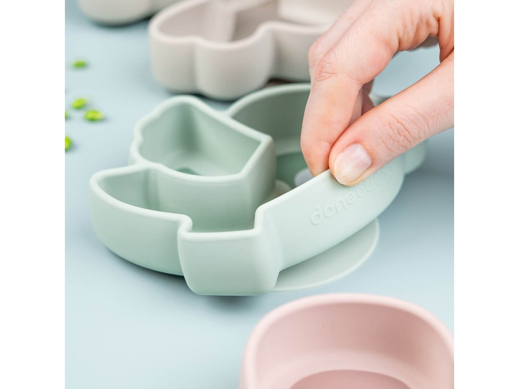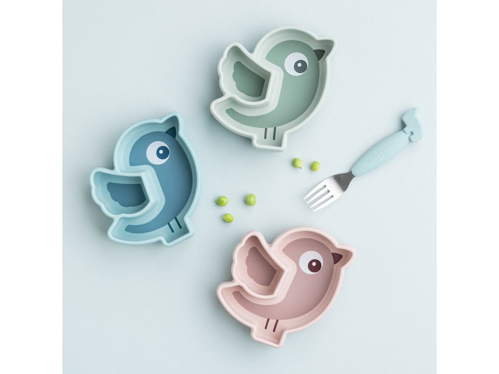 Přísavná základna zabraňuje malým dětem tlačit, překlápět nebo házet talíř .Dvě přihrádky pro oddělení potravin. Pod křídlem Birdee je skryta snadno odnímatelná klapka. Zaoblené vnitřní okraje usnadňují malým dětem nabírání jídla. 100% potravinářská kvalita a silikon bez BPA umožňuje bezpečné používání pro děti. Talíř na svačinu Birdee.