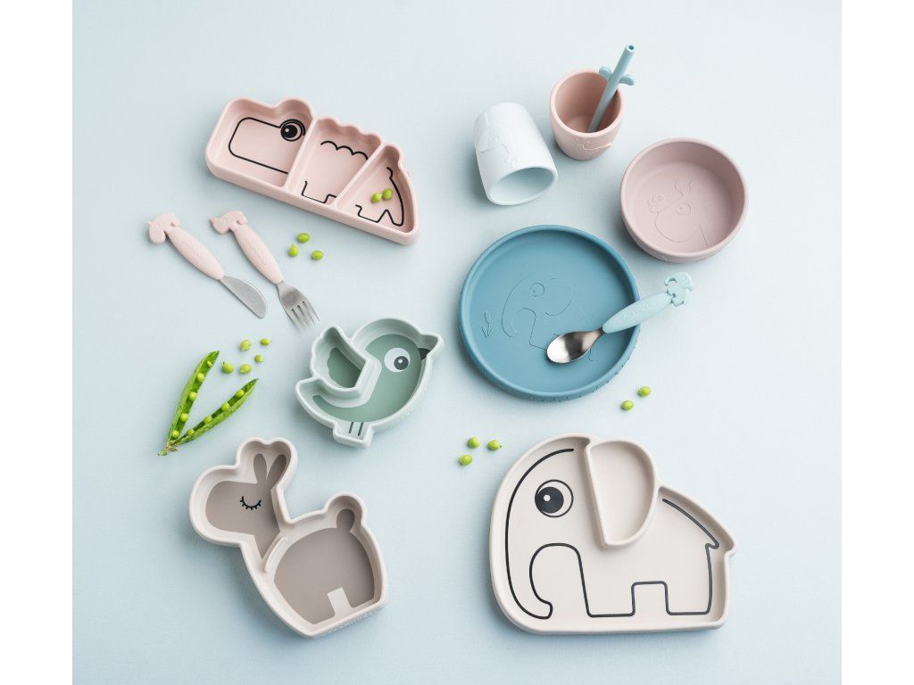 Croco je připraven udělat zábavnou svačinku. Silikonový talíř se třimi samostatnými přihrádkami se udrží pevně na svém místě díky protiskluzu na spodní straně. Talíř stačí přitlačit ke stolu a on přilne k hladkému povrchu a zabrání tak i těm nejmenším k otáčení nebo házení talířku. Pod Crocovým ocáskem se skrývá snadno uvolnitelná klapka, díky které talířek opět snadno odděláte od povrchu.