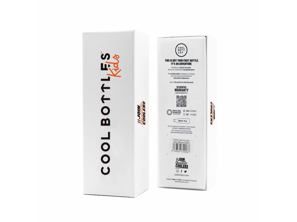 Tato termoláhev pro děti udrží studený nápoj až po dobu 36 hodin a teplý až 18 hodin, a to díky unikátní třívrstvé technologii Triple Cool™ Technology. Nerezová dětská termoláhev Cool bottles Kids je vyrobená z kvalitní potravinářské oceli s označením 18/8, která navíc obsahuje 18% chromu a 8% niklu, takže je vysoce odolná vůči korozi a téměř dokonale inertní (nereaguje s jinými prvky), a proto je vhodná pro kontakt s potravinami i ve vysokých teplotách. Zcela bez BPA, ftalátů a toxinů. Vhodné pro kyselé a sycené nápoje.